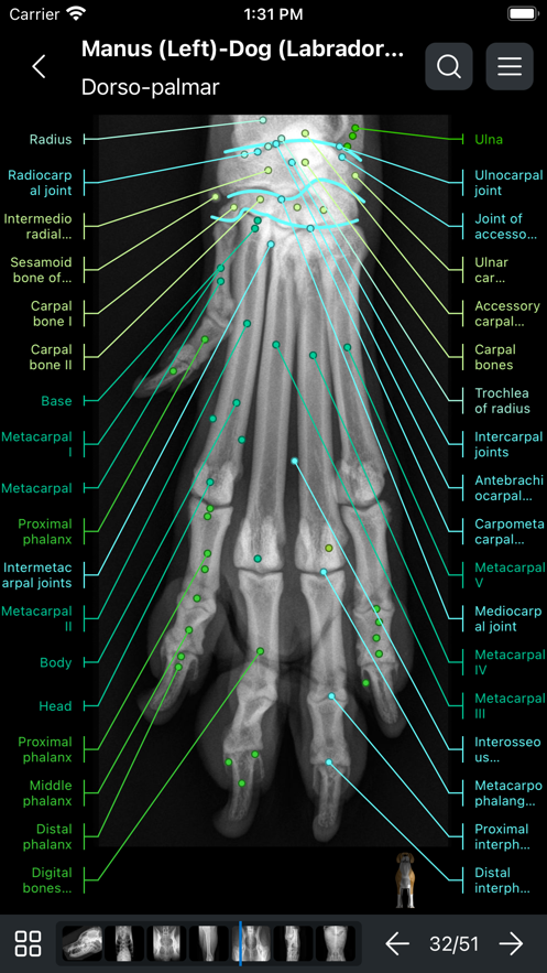 vet anatomy是一款十分好用的手机软件,专门为相关人士所准备,其功能强大,用户可以在这里了解动物的解刨知识,并且APP提供了海量的图集,联合了多位科学家的心血,十分的权威,能让你充分认识到动物各个部位的知识,提升自己的解刨技巧。同时用户可以通过滑动手指来浏览图片,进行放大或缩小,以及点按标签以显示特定的解剖结构。